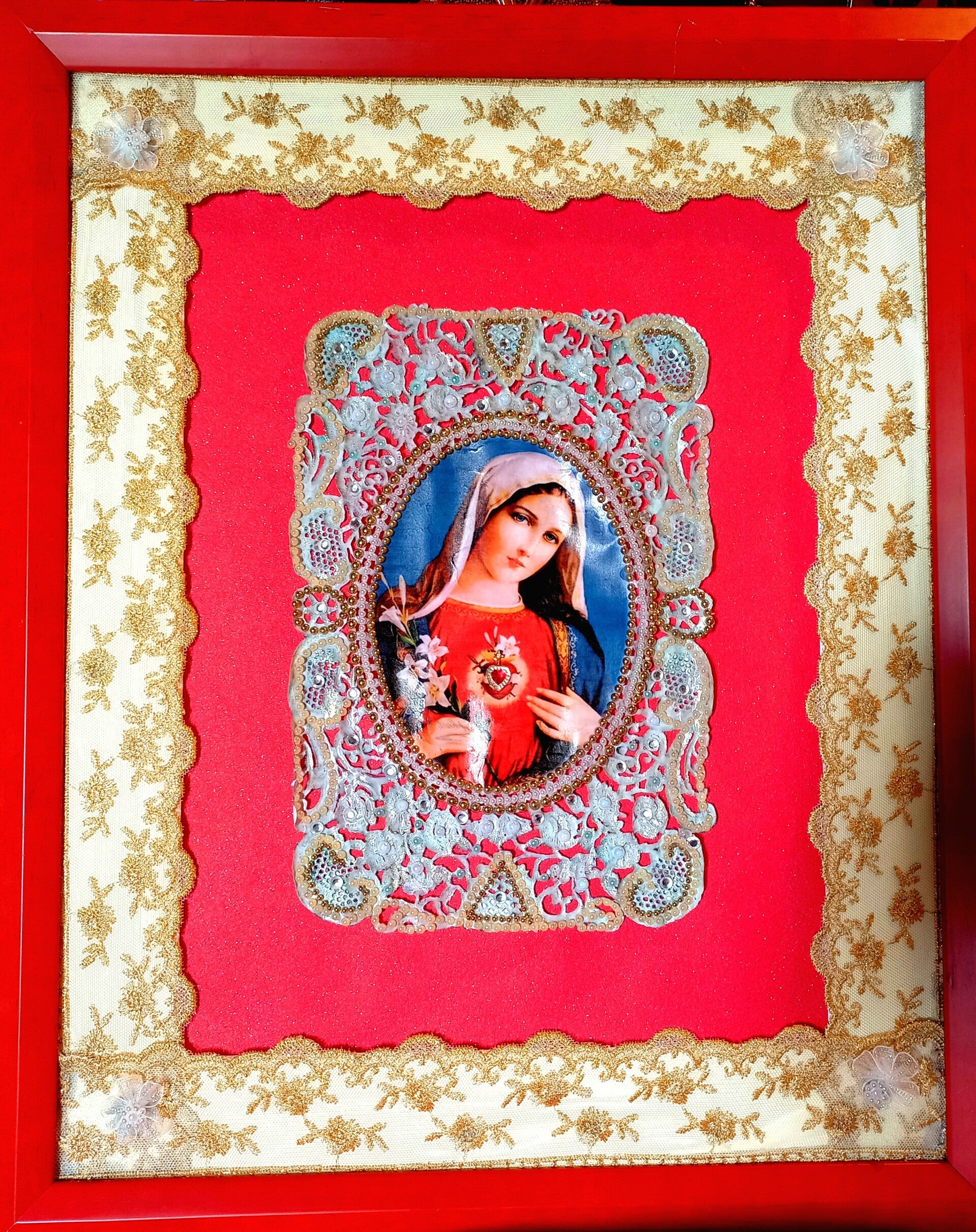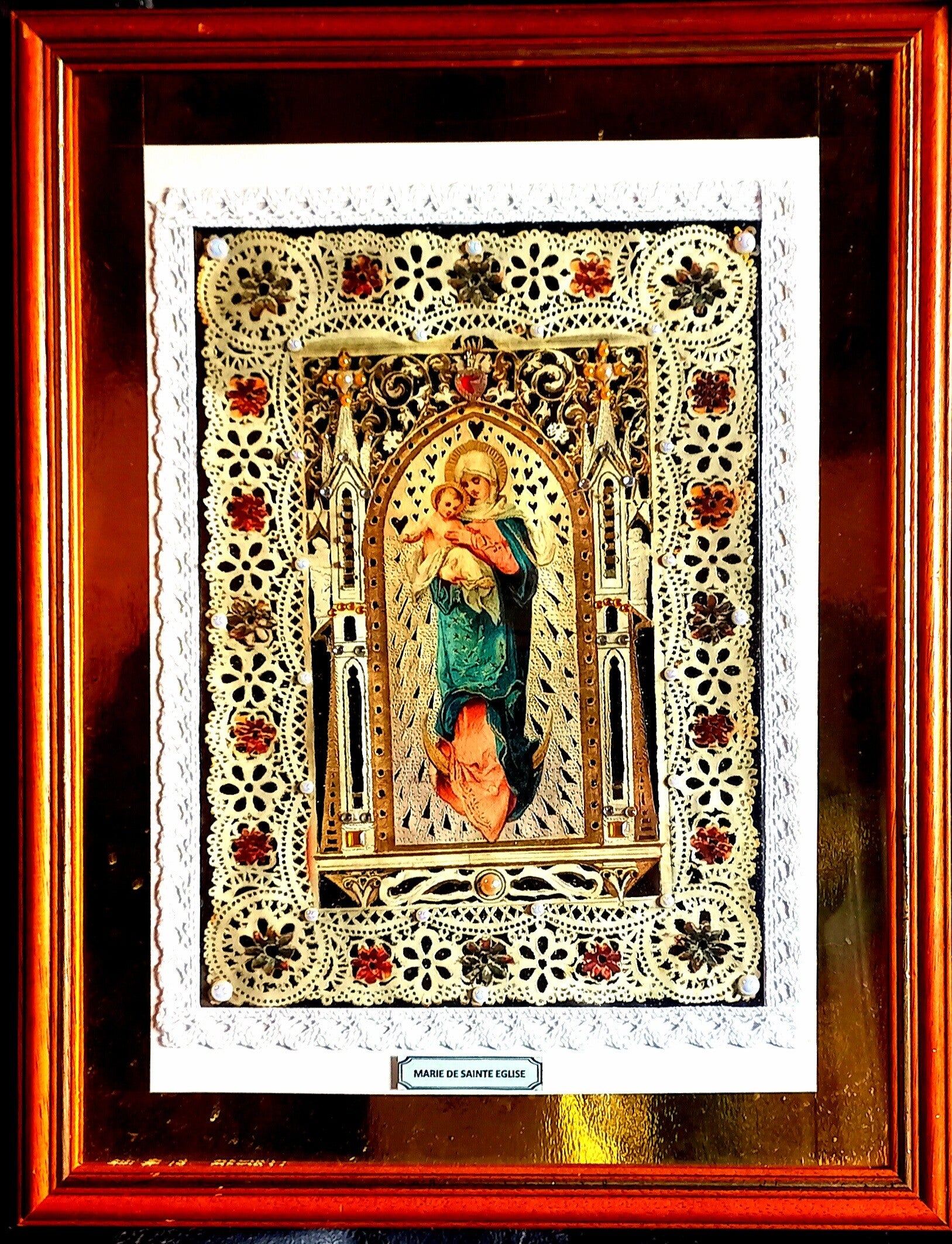 RELIQUAIRE-ICONOGRAPHIE CHRETIENNE- IMAGE DENTELLE- CANIVETS DENTELLE