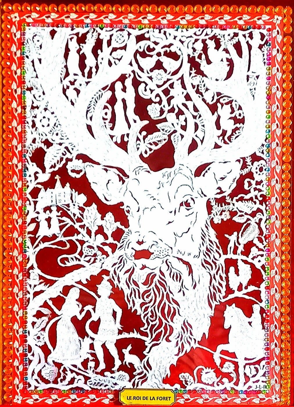 À l’origine, le véritable Canivet était une œuvre profondément spirituelle : une peinture minutieuse réalisée sur parchemin, agrémentée de motifs délicats découpés à l’aide d’un canif extrêmement fin et aiguisé. Ce mot, « Canivet », provient du terme médiéval canipulum, qui désignait un petit couteau utilisé par les enlumineurs et copistes. Cet outil servait aussi bien à tailler des plumes d’oie qu’à graver des ornements raffinés dans le parchemin.